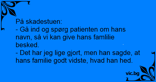 - Gå ind og spørg patienten om hans navn, så vi kan give hans famlilie besked.