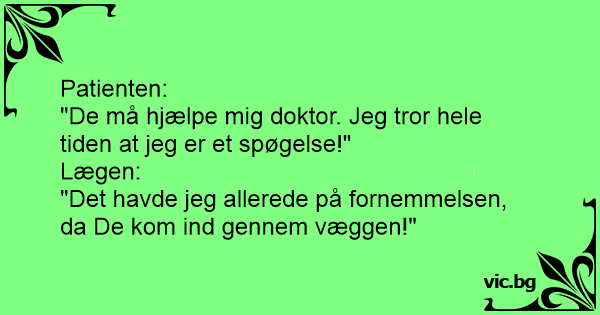 "De må hjælpe mig doktor. Jeg tror hele tiden at jeg er et spøgelse!"