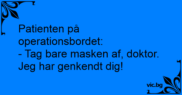 Ameliyat masasında uzanan hasta doktora şöyle der:Çıkarın maskenizi doktor bey çünkü sizi tanıdım. Een man gaat naar het ziekenhuis om geopereerd te worden. Als hij in de operatiekamer ligt, ziet hij de doktors met mondkapjes op. De man zegt tegen de dokters: 'Doe die mondkapjes maar af hoor! Ik...