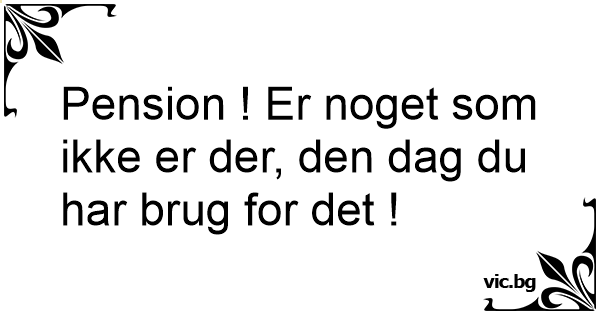 Pension ! Er noget som ikke er der, den dag du har brug for det !