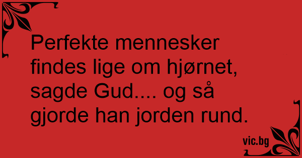 Perfekte mennesker findes lige om hjørnet, sagde Gud.... og så gjorde han jorden rund.