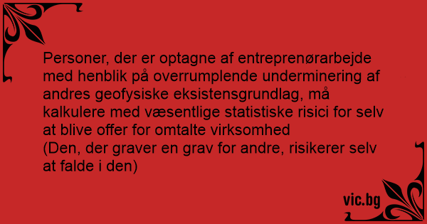 Personer, der er optagne af entreprenørarbejde med henblik på overrumplende underminering af andres geofysiske eksistensgrundlag, må kalkulere med væsentlige statistiske risici for selv at blive offer for omtalte virksomhed