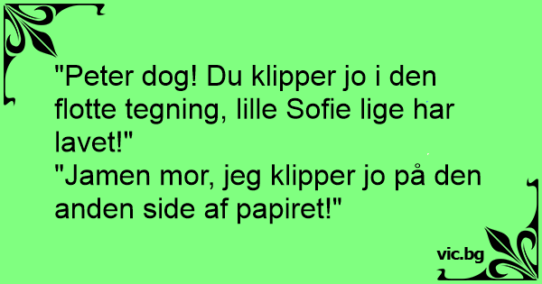 "Peter dog! Du klipper jo i den flotte tegning, lille Sofie lige har lavet!"