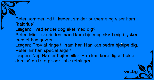 Peter kommer ind til lægen, smider bukserne og viser ham “kalorius”