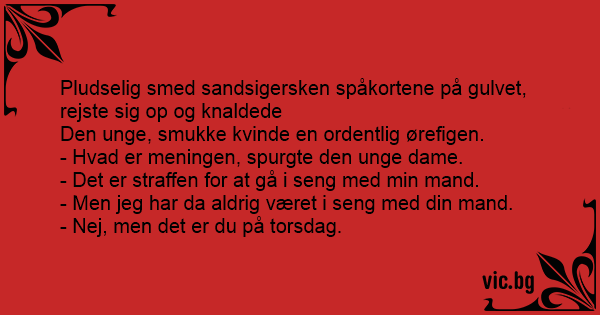 Pludselig smed sandsigersken spåkortene på gulvet, rejste sig op og knaldede