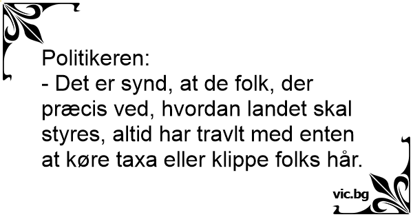 - Det er synd, at de folk, der præcis ved, hvordan landet skal styres, altid har travlt med enten at køre taxa eller klippe folks hår.