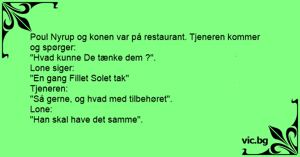 Poul Nyrup og konen var på restaurant. Tjeneren kommer og spørger: