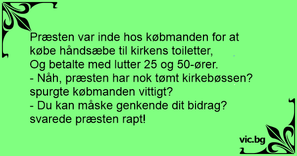 - Nåh, præsten har nok tømt kirkebøssen? spurgte købmanden vittigt?