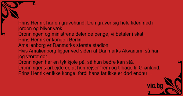 Dronning Margrethe er gift med prins Henrik. Han blev sejlet hertil om natten nede fra en anden, hvor de ikke gad at have ham mere.