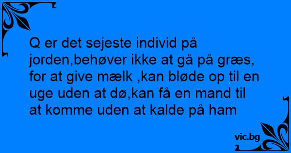 Q er det sejeste individ på jorden,behøver ikke at gå på græs, for at give mælk ,kan bløde op til en uge uden at dø,kan få en mand til at komme uden at kalde på ham