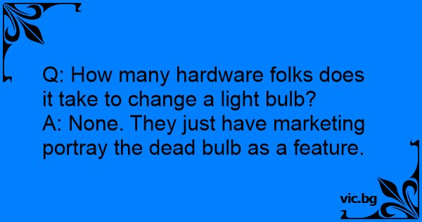 Q: How many hardware folks does it take to change a light bulb?