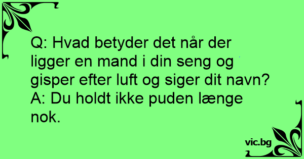 Q: Hvad betyder det når der liggеr en mand i din seng og gisper efter luft og siger dit navn?