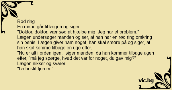 "Doktor, doktor, vær sød at hjælpe mig. Jeg har et problem."