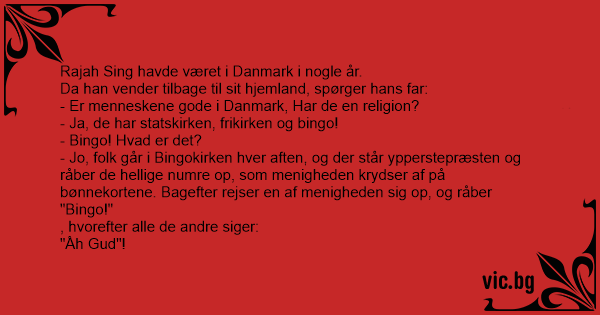 - Jo, folk går i Bingokirken hver aften, og der står ypperstepræsten og råber de hellige numre op, som menigheden krydser af på bønnekortene. Bagefter rejser en af menigheden sig op, og råber