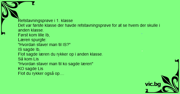 Det var første klasse der havde retstavningsprøve for at se hvem der skulle i anden klasse.