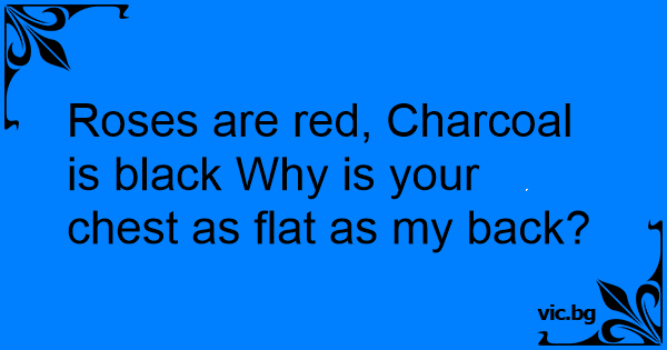 Roses are red, Charcoal is black Why is your chest as flat as my back?
