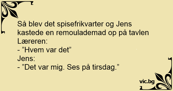 Så blev det spisefrikvarter og Jens kastede en remoulademad op på tavlen