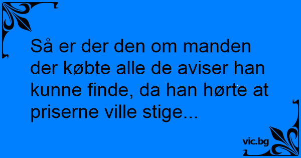 Så er der den om manden der købte alle de aviser han kunne finde, da han hørte at priserne ville stige...