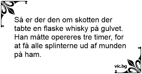 Så er der den om skotten der tabte en flaske whisky på gulvet.