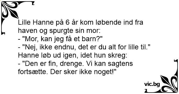 Lille Hanne på 6 år kom løbende ind fra haven og spurgte sin mor: