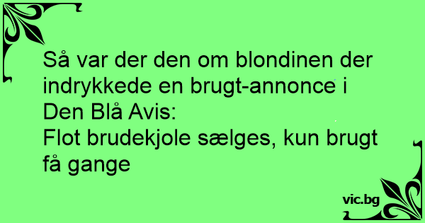 Så var der den om blondinen der indrykkede en brugt-annonce i Den Blå Avis:
