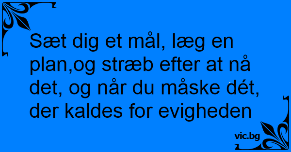 Sæt dig et mål, læg en plan,og stræb efter at nå det, og når du måske dét, der kaldes for evigheden
