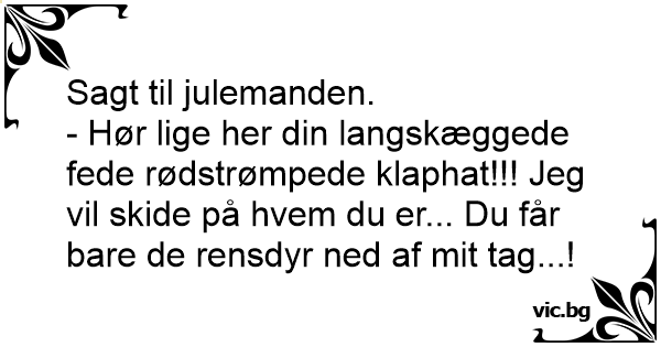 - Hør lige her din langskæggede fede rødstrømpede klaphat!!! Jeg vil skide på hvem du er... Du får bare de rensdyr ned af mit tag...!