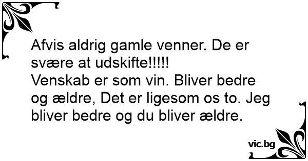 Afvis aldrig gamle venner. De er svære at udskifte!!!!!