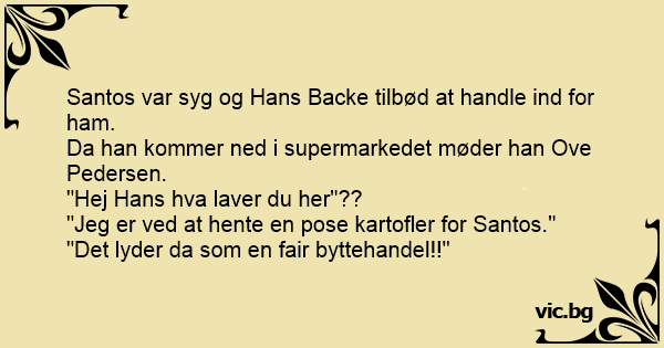 "Jeg er ved at hente en pose kartofler for Santos."