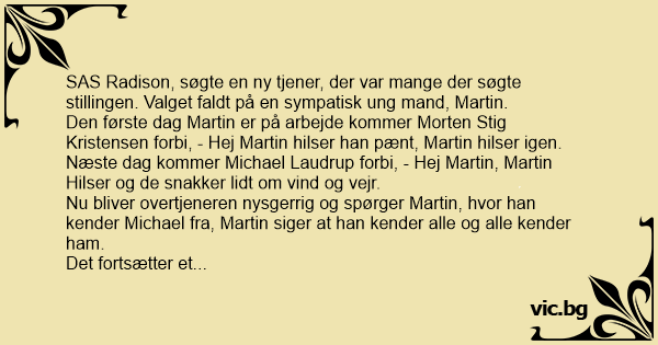 SAS Radison, søgte en ny tjener, der var mange der søgte stillingen. Valget faldt på en sympatisk ung mand, Martin.