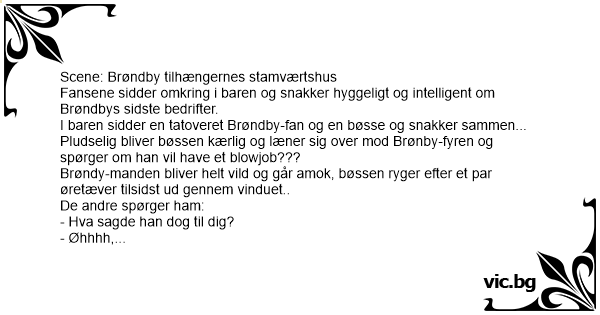 I baren sidder en tatoveret Brøndby-fаn og en bøsse og snakker sammen...