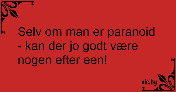 Selv om man er paranoid - kan der jo godt være nogen efter een!