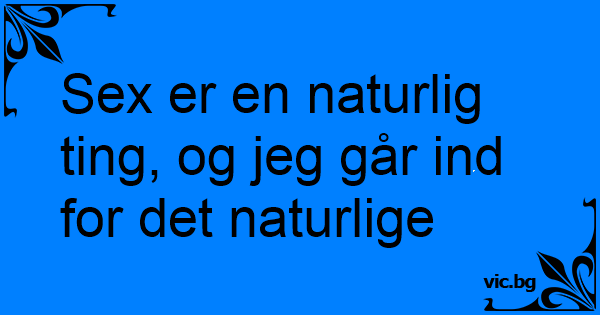 Sеx er en naturlig ting, og jeg går ind for det naturlige