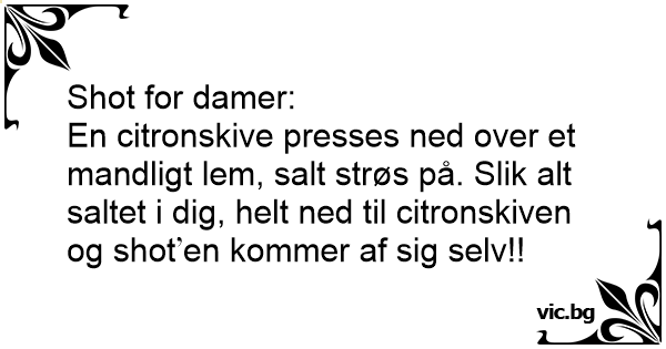 En citronskive presses ned over et mandligt lem, salt strøs på. Slik alt saltet i dig, helt ned til citronskiven og shoten kommer af sig selv!!