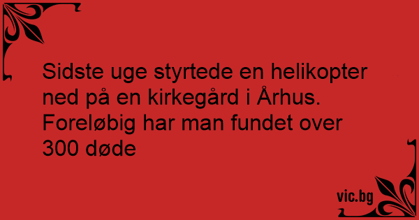 Kirkegården En blondine siger til en anden “Vidste du godt der var en helikopter der styrtede ned i kirkegården i går? Der er fundet mange døde og tallet er stigende”.