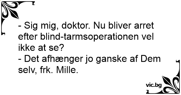 - Sig mig, doktor. Nu bliver arret efter blind-tarmsoperationen vel ikke at se?
