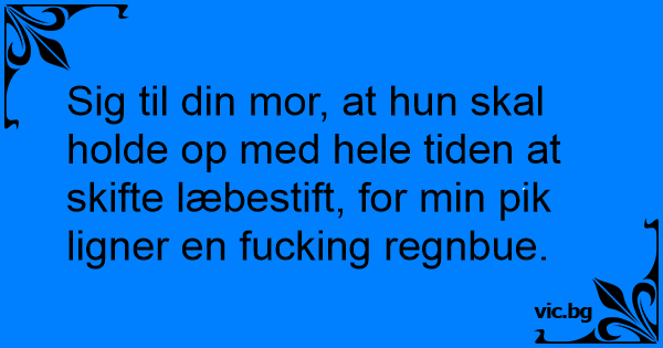 Sig til din mor, at hun skal holde op med hele tiden at skifte læbestift, for min pik ligner en fuскing regnbue.