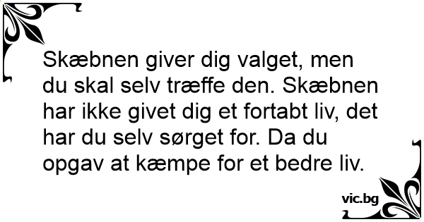 Skæbnen giver dig valget, men du skal selv træffe den. Skæbnen har ikke givet dig et fortabt liv, det har du selv sørget for. Da du opgav at kæmpe for et bedre liv.