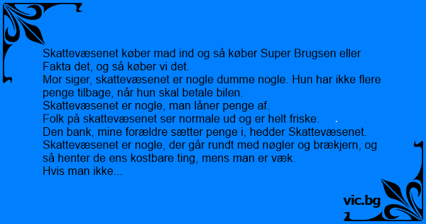 Den bank, mine forældre sætter penge i, hedder Skattevæsenet.