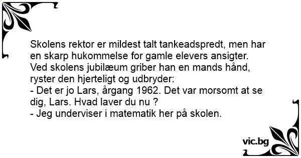 Skolens rektor er mildest talt tankeadspredt, men har en skarp hukommelse for gamle elevers ansigter.