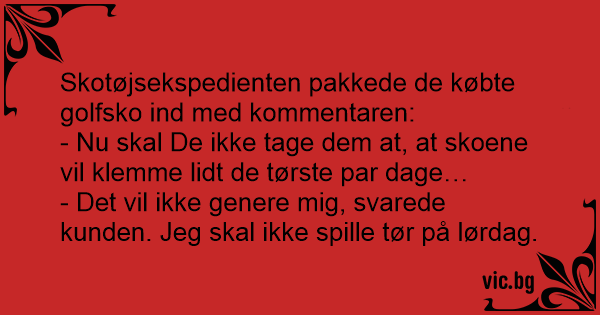 Skotøjsekspedienten pakkede de købte golfsko ind med kommentaren: