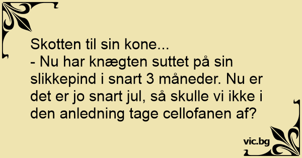 - Nu har knægten suttet på sin slikkepind i snart 3 måneder. Nu er det er jo snart jul, så skulle vi ikke i den anledning tage cellofanen af?