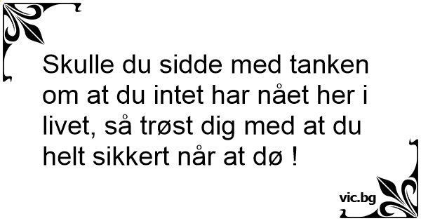 Skulle du sidde med tanken om at du intet har nået her i livet, så trøst dig med at du helt sikkert når at dø !