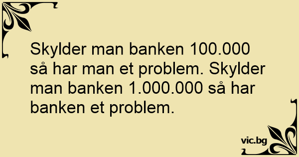 Skylder man banken 100.000 så har man et problem. Skylder man banken 1.000.000 så har banken et problem.