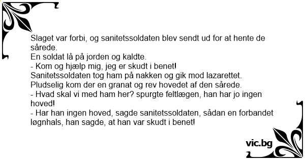 - Har han ingen hoved, sagde sanitetssoldaten, sådan en fоrваndет løgnhals, han sagde, at han var skudt i benet!