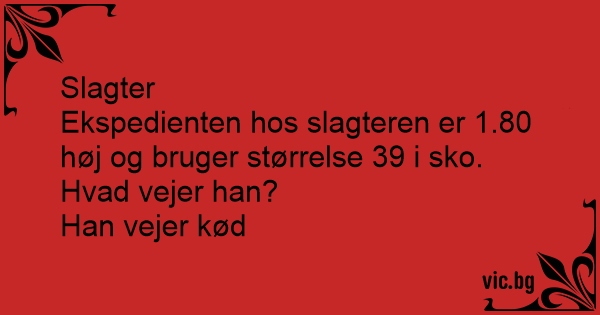 Ekspedienten hos slagteren er 1.80 høj og bruger størrelse 39 i sko.
