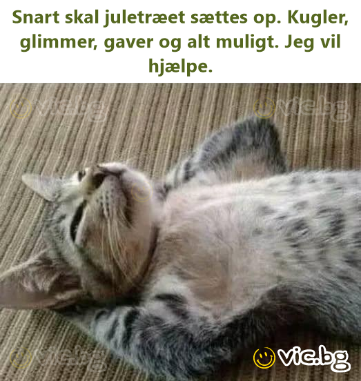 Snart skal juletreet settes opp. Kuler, glitter, gaver og slikt. Jeg skal hjelpe.