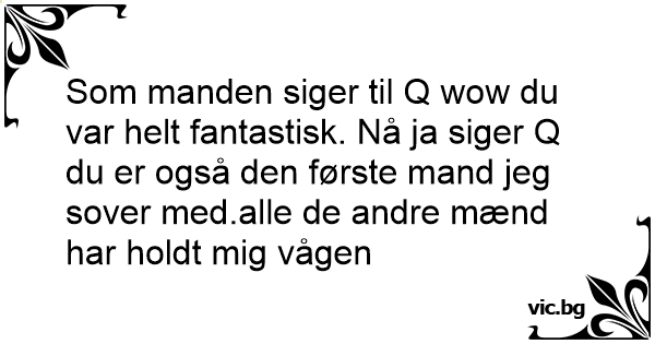 Som manden siger til Q wow du var helt fantastisk. Nå ja siger Q du er også den første mand jeg sover med.alle de andre mænd har holdt mig vågen