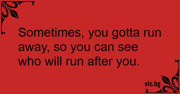 Sometimes, you gotta run away, so you can see who will run after you.