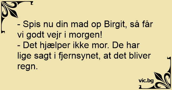 - Det hjælper ikke mor. De har lige sagt i fjernsynet, at det bliver regn.